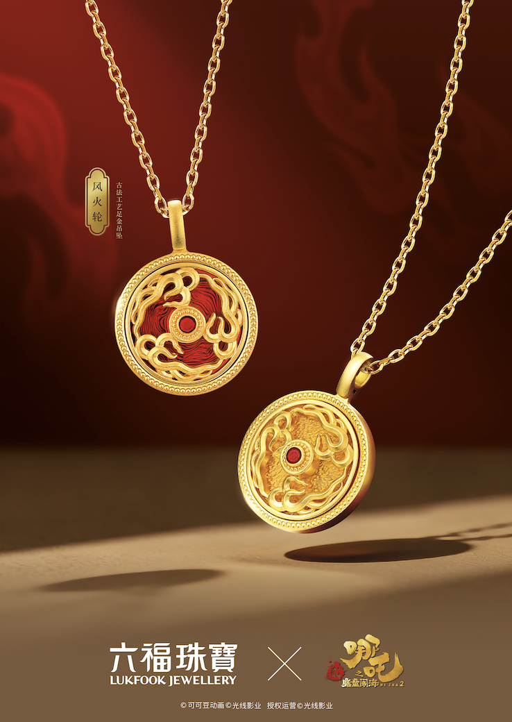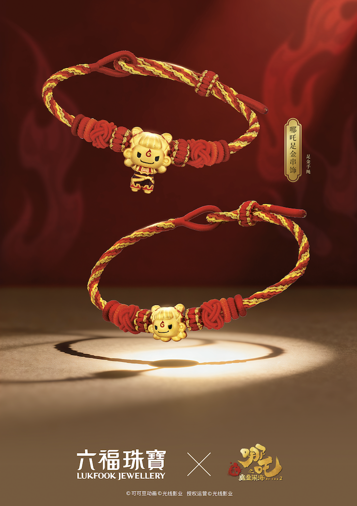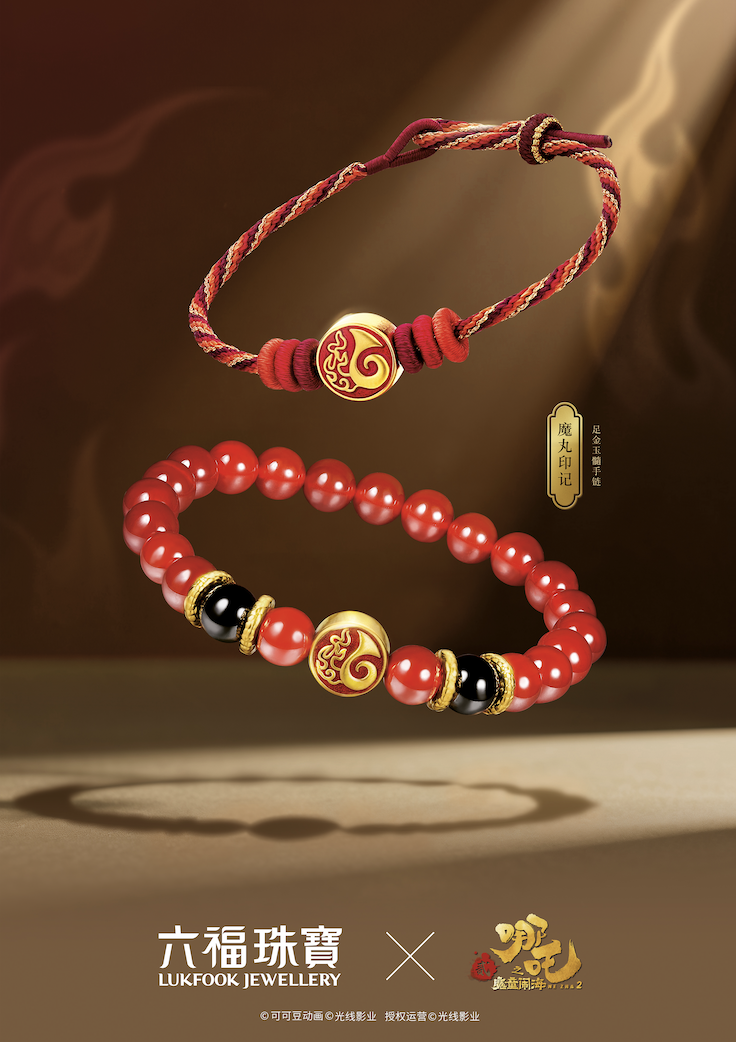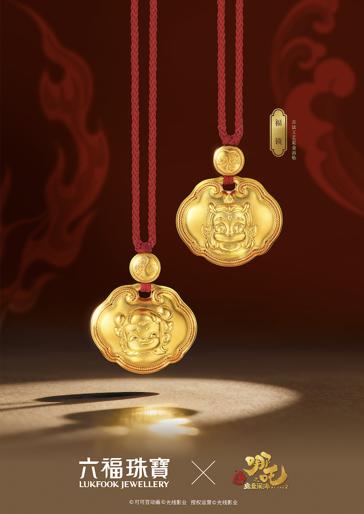 在本次合作中,六福珠宝用饰品作为载体,将“哪吒们的精神”从银幕中搬下场,落实在了佩戴者的身体上,落实在日常社交的细节中。