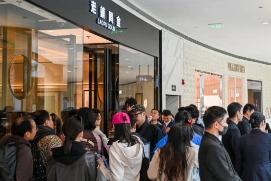 10月底,老铺黄金在上海恒隆广场新店开业,提前一天彻夜等候在商场外的排队场景,将关注度从高端商业的少数受众,罕见扩展到了全民热议的话题。