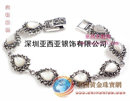 亚银饰批发网(www.happy925.com), 925泰银, 镶马克赛石,长宽约33*41MM,重约9.4克