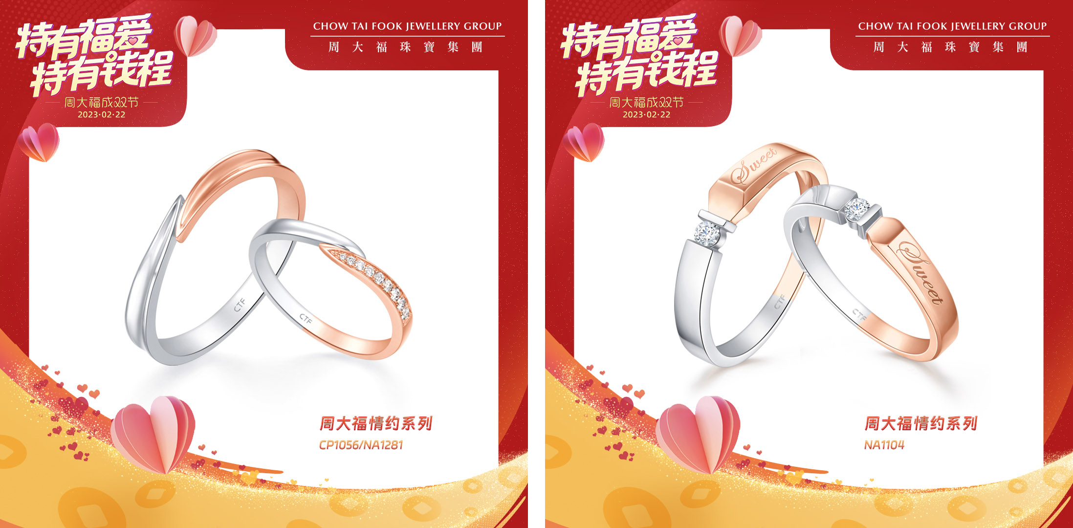 2月16日至22日成双节活动期间,成双购,成双款,成双礼,幸福来袭,福利满满,宠爱加倍,可到周大福线下门店咨询。