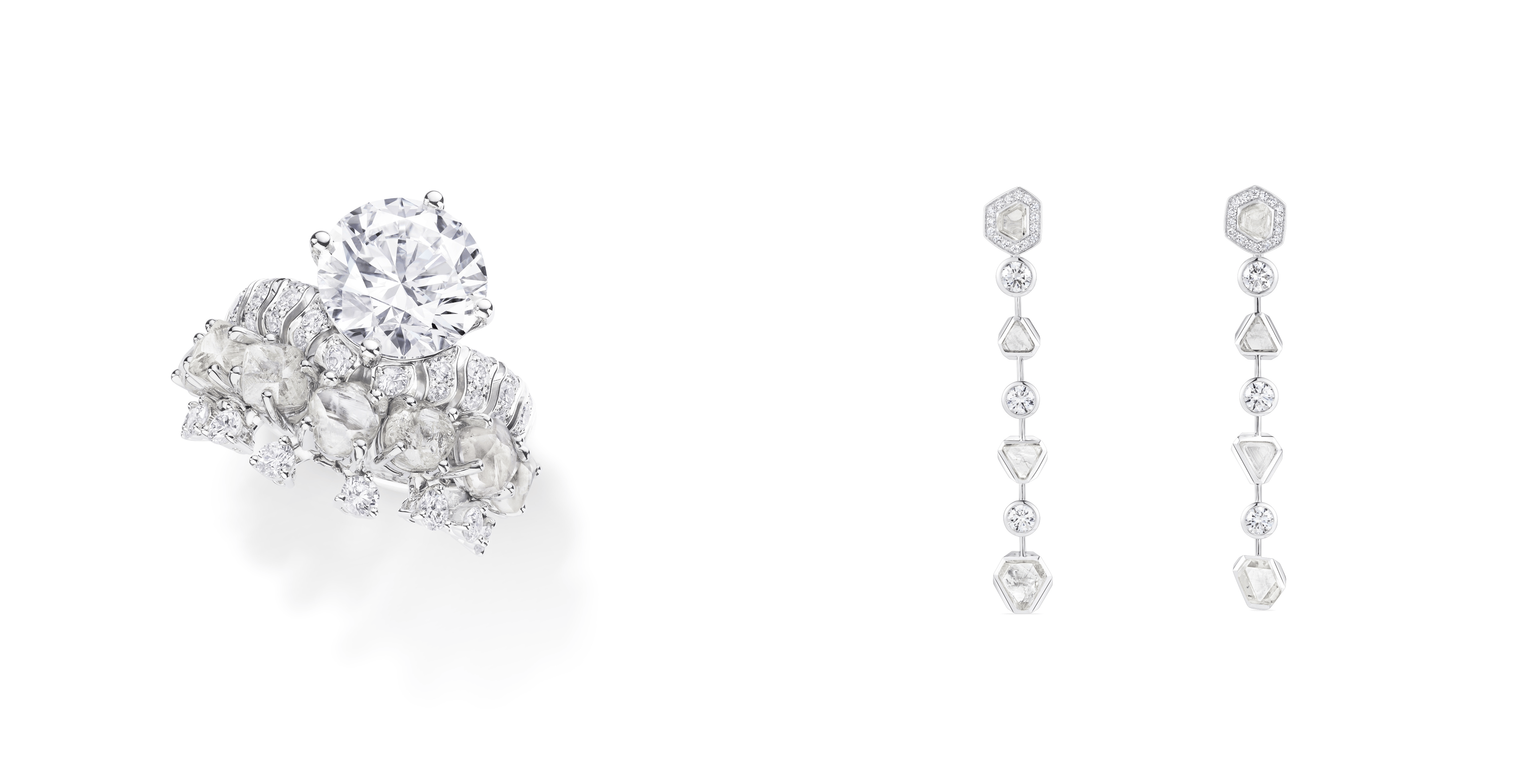 本次发布的胶囊珠宝系列作品,将这一责任之旅转化为可佩戴的艺术。系列作品均采用来自GemFair项目的钻石,巧妙组合未经雕琢的钻石原石与抛光美钻,生动诠释“蜕变”主题,礼赞品牌与钻石开采地的深厚连结。每一颗历经自然、水流磅礴之力塑就的原钻,皆因其卓越的纯净度与明亮度而被手工甄选;抛光钻石则由匠人手工雕琢,与保留天然原貌的原石相映成趣,既绽现大地的原始之美,亦奏响自然与人类匠艺的对话。此外,GemFair也已经成为戴比尔斯未来珠宝系列的注册供应商,标志着GemFair的钻石在品质与责任采购方面已完全满足高级珠宝的严苛标准,为连接非凡钻石和它们的发掘者与最终佩戴者迈出了关键一步。