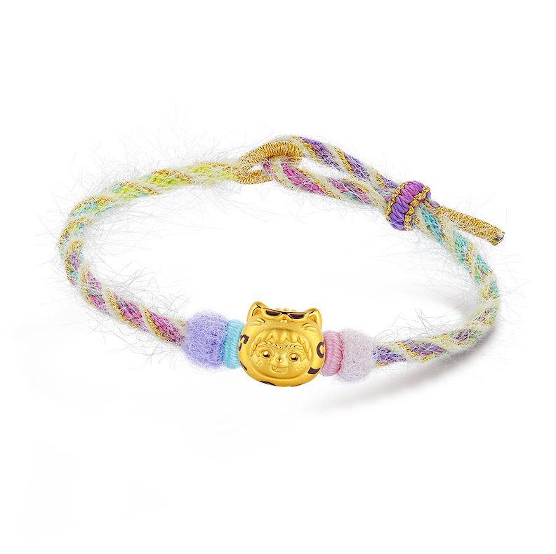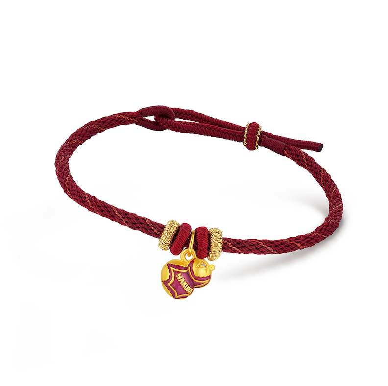 WAKUKU系列涵盖多款萌酷十足的黄金手绳,更特别推出萌暖毛绒手绳与酷感手绳双重选择,满足消费者对个性表达与场景适配的多元需求,风格不设限。萌暖毛绒手绳触感软糯,冬日佩戴温暖舒适,与WAKUKU的可爱气质天然契合,萌力全开!酷感手绳主打简约利落,清爽质感更凸显黄金串饰本身的精致工艺与闪耀光泽,时尚百搭!多款串饰还可自由组合,混搭叠戴。单戴时,祝愿福运聚焦,心意纯粹;叠戴时,祈望福气串联,美好加倍,做到“潮趣由你定义,祝福好运随心叠加”。