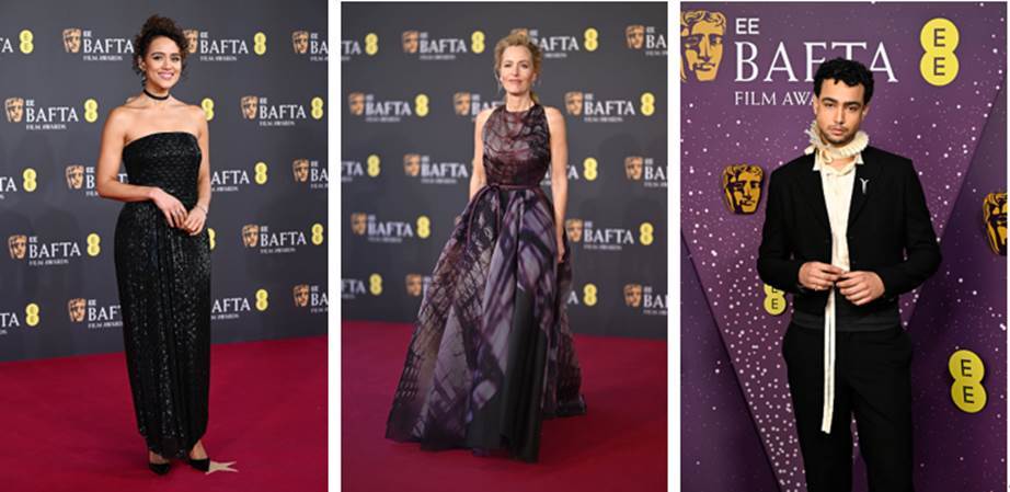 英国电影学院奖红毯上众星佩戴沙漠钻石珠宝彰显自我风格,左上至右下:娜塔莉·伊曼纽尔(Nathalie Emmanuel)、吉莲·安德森(Gillian Anderson)、阿奇·马德奎(Archie Madekwe)、Audrey Nuna、雷吉-让·佩吉(Regé-Jean Page)
