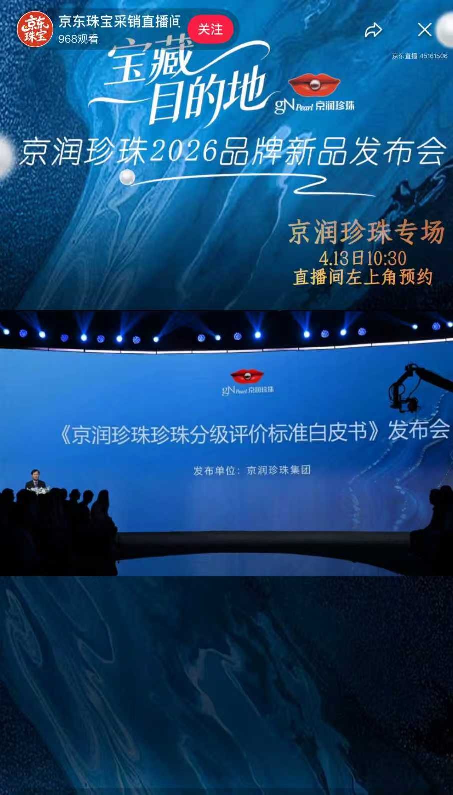 4月12日,京润珍珠在京东独家首发“方圆奕境”“力劈沧海”等系列新品,并在京东采销直播间同步直播2026新品发布会,带来珍珠项链、耳钉、手链等全品类珍珠新品,京东珠宝采销直播间更是推出首发直降300、专属券、限时折扣、礼盒包装等多重新品福利。